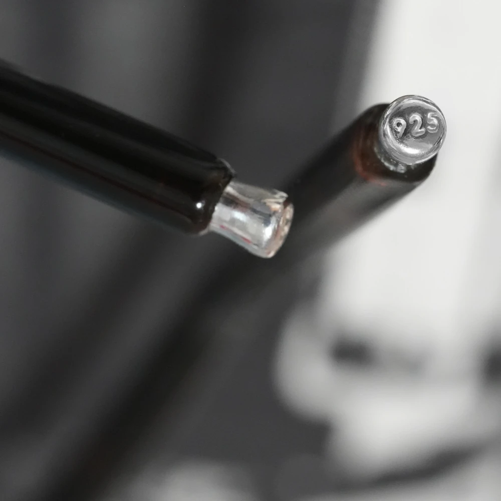 パッドは奈良県の工場で熟練職人達の手により一つ一つ丁寧に作られた美しい貝殻素材のシェルパッドを使用。モダンのエンドチップにはバランサーの役割も果たすシルバー925素材です。