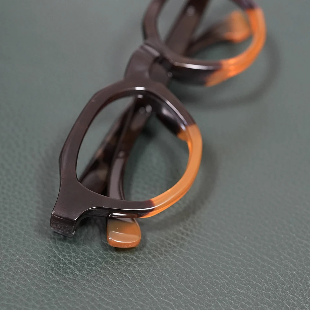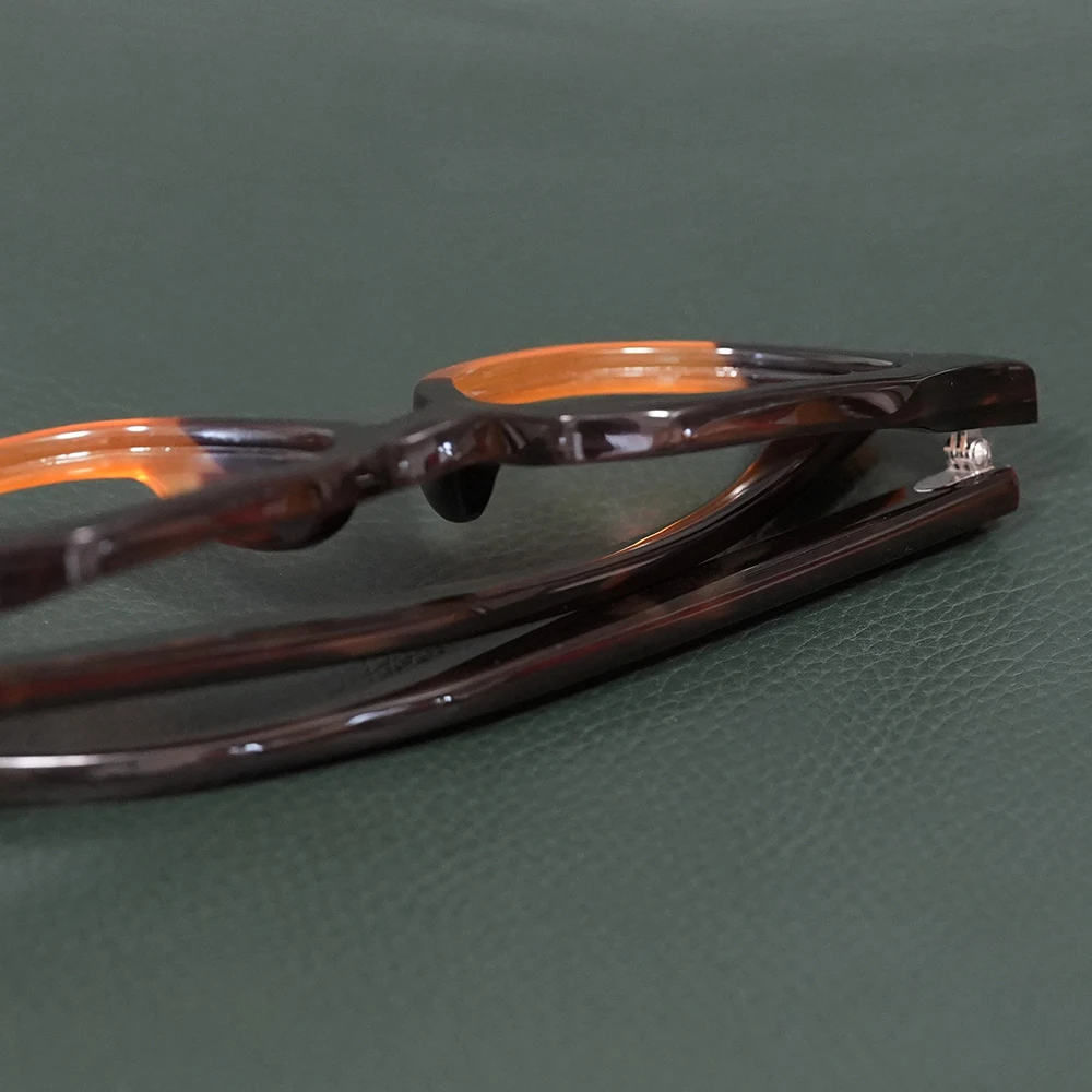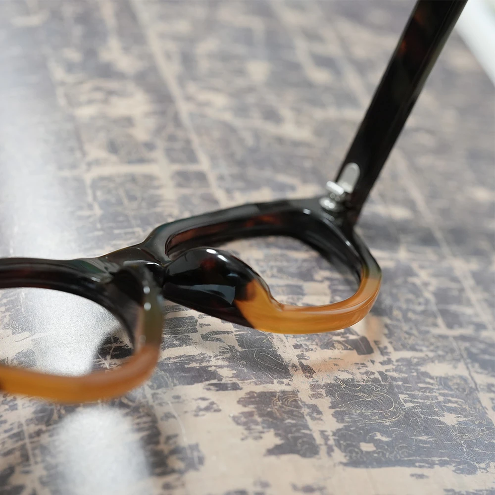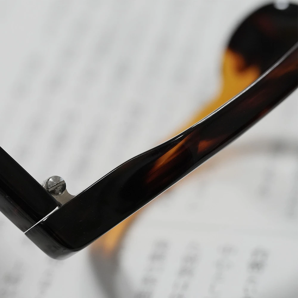 本べっ甲メガネ オール甲 並甲 オレンジ甲ハーフ DK8821 880,000円 ※オール甲の本べっ甲メガネの通信販売は行っておりません。在庫確認などお気軽にお問い合わせ下さい。 在庫切れ/お問い合わせ下さい 商品コード: 131071 カテゴリー: メガネ タグ: べっ甲, メガネ, 多角形 ブランド: 本べっ甲メガネ 詳細 お問い合わせ 詳細 上部に並甲(並トロ甲)、下部に希少なオレンジ甲を使用した七角形シェイプのモダンな本べっ甲メガネ。熟練のべっ甲職人の手により1点のみ作製された銀座鼈甲眼鏡(ミツメドウ)のオリジナルデザインです。斜めのラインを意識して配色は意図的に行われています。また、べっ甲メガネのフロント厚は一定なものがほとんどですが、厚みを5mmから7mmに変えることにより奥行きが感じられます。クラシックなキーホール型ブリッジ、モダンエンドの切り替えもスタイリッシュ。蝶番金具は合金を使用しています。レンズ横幅48mm 縦幅38mm レンズ間距離21mm フロント幅147mm 本べっ甲メガネのページに戻る 氏名 メールアドレス(必須) 題名 お問い合わせ内容をご記載下さい(必須) 関連商品 水島眼鏡 MI-0954 85,800円 – 92,400円価格帯: 85,800円 – 92,400円 在庫切れ/お問い合わせ下さい この商品には複数のバリエーションがあります。 オプションは商品ページから選択できます 水島眼鏡 MI-444 66,000円 お買い物カゴに追加 隆織 TO-023 44,000円 お買い物カゴに追加 この商品には複数のバリエーションがあります。 オプションは商品ページから選択できます ファクトリー900 FA-204 68,200円 お買い物カゴに追加