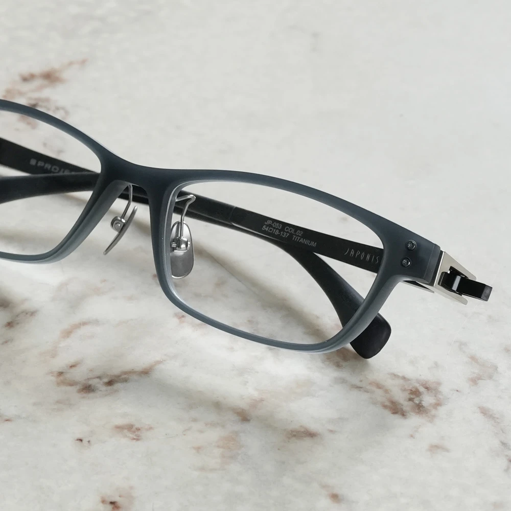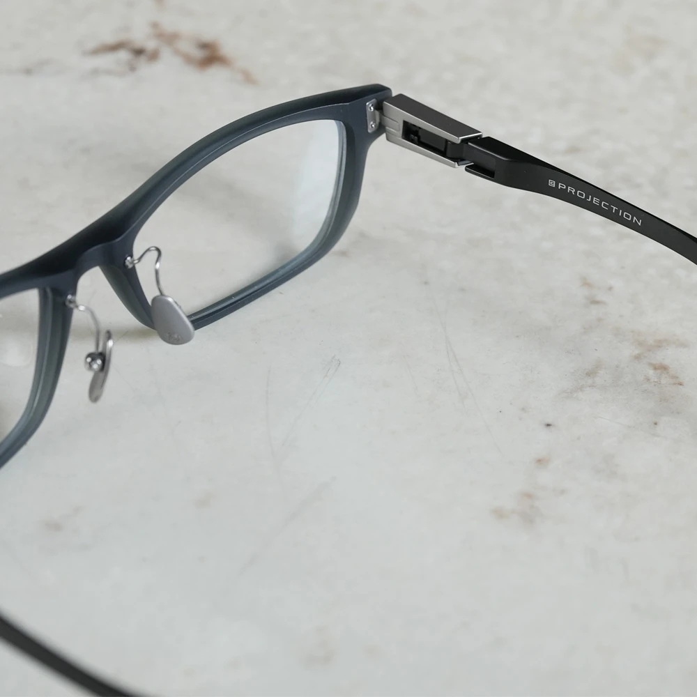 耐久性の高いオリジナルヒンジが特徴のプロジェクションコレクション。ジャポニスムらしいシャープなデザインのフロントは、柔軟性と高い硬度、耐熱性を併せ持つドイツ製のナイロン素材「トロガミド」を採用。その軽さにも驚かされます。掛け心地の良さには定評のあるジャポニスムですが、肌触りの良いエラストマー製の新モダンも掛け心地の良さを、さらに高めています。また、鼻パッドに特殊なブラスト加工を施したマイクロチタンパッドを採用し安定感も向上しています。