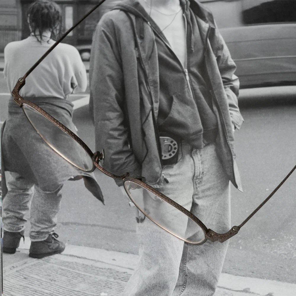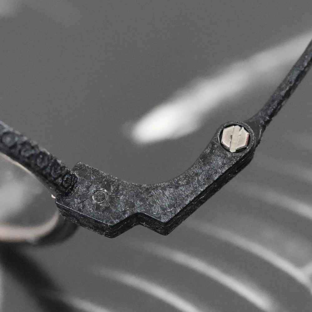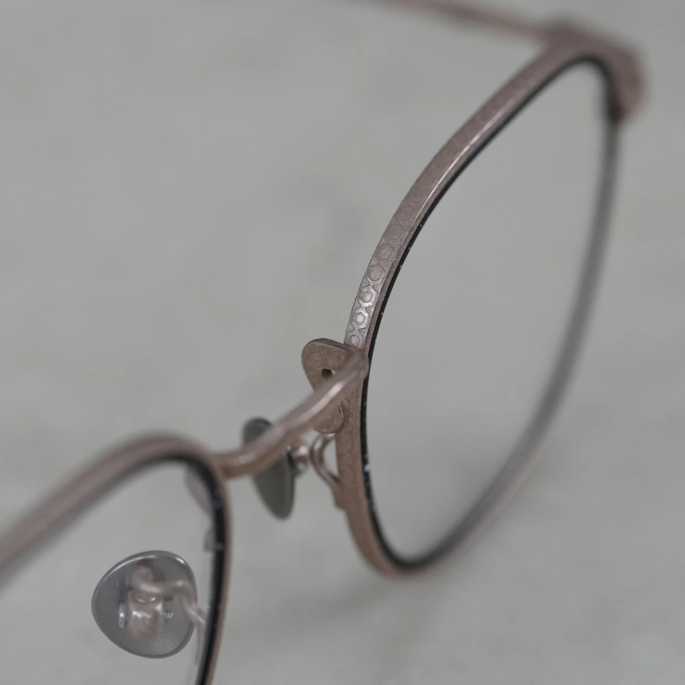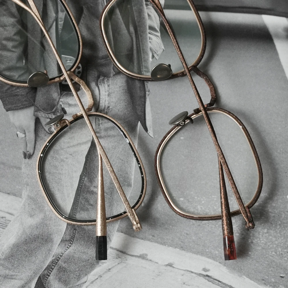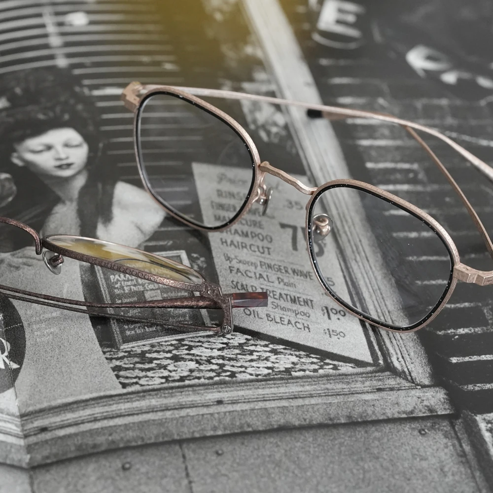 やや大きめサイズの優しいスクエアシェイプは性別問わずお勧めです。チタン素材のメガネを開発した業界の賢人に敬意を払いつつ新しい、最先端のシュリンク技術でチタンの新たな表情を生み出した存在感と力強さのあるメタルフレーム。メタルリムには絵画でも使用されるスパッタリングによりランダムな模様が付けられています。各色200本の限定生産、ブランドマークの六角形型のモダンエンドはシリアル番号入り。また、三角型のチタンパッドは左側に「芸術」、右側に「嘘と」の刻印が施されています。モデル名の「キケロ」は、古代ローマの偉大な政治家、哲学者の名前から。